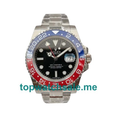 Buy high quality Rolex GMT-Master II replica watches for men with blue and red bezels online, and the 1:1 top fake Rolex watches UK are combined with steel cases and steel bracelets.